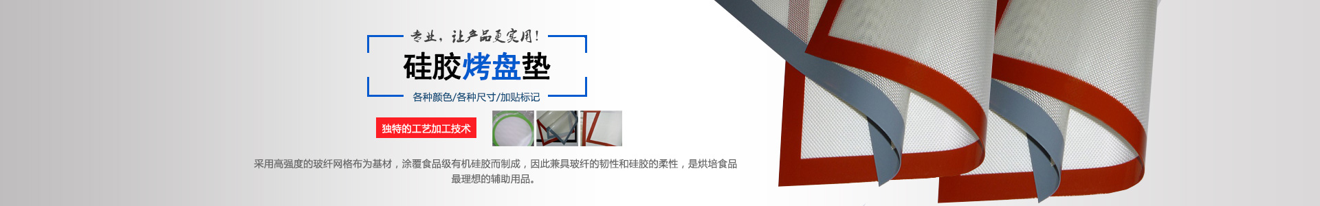 公司是以聚四氟乙烯(PTFE)和硅橡胶涂层制品为特色的生产型企业。目前主要产品有氟,硅两大系列100多个品种的高分子工业用布复合材料:PTFE特氟龙耐高温焊布(漆布),PTFE特氟龙网格输送带,PTFE特氟龙粘合机带,PTFE特氟龙粘胶带,硅橡胶涂覆玻璃纤维布,铁氟龙胶带,特氟龙高温布,四氟布,粘合机无缝带,软连接硅胶布,烤盘垫等。公司优质的产品质量、良好的企业信誉不但赢得了广泛客户的好评与信赖,同时公司拥有自营进出口权,产品跨出了国门。